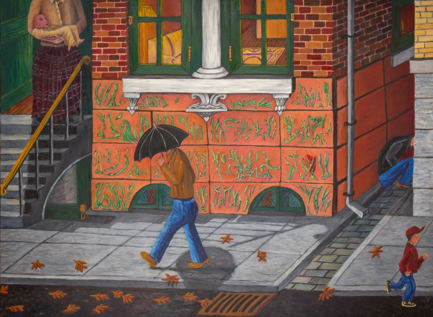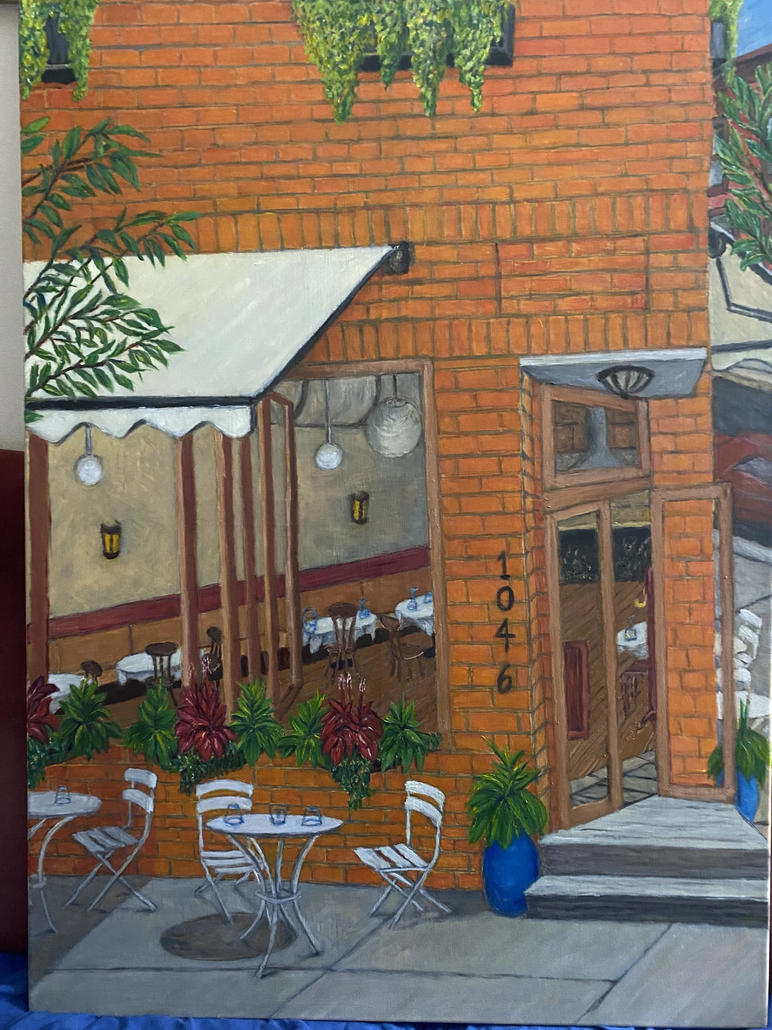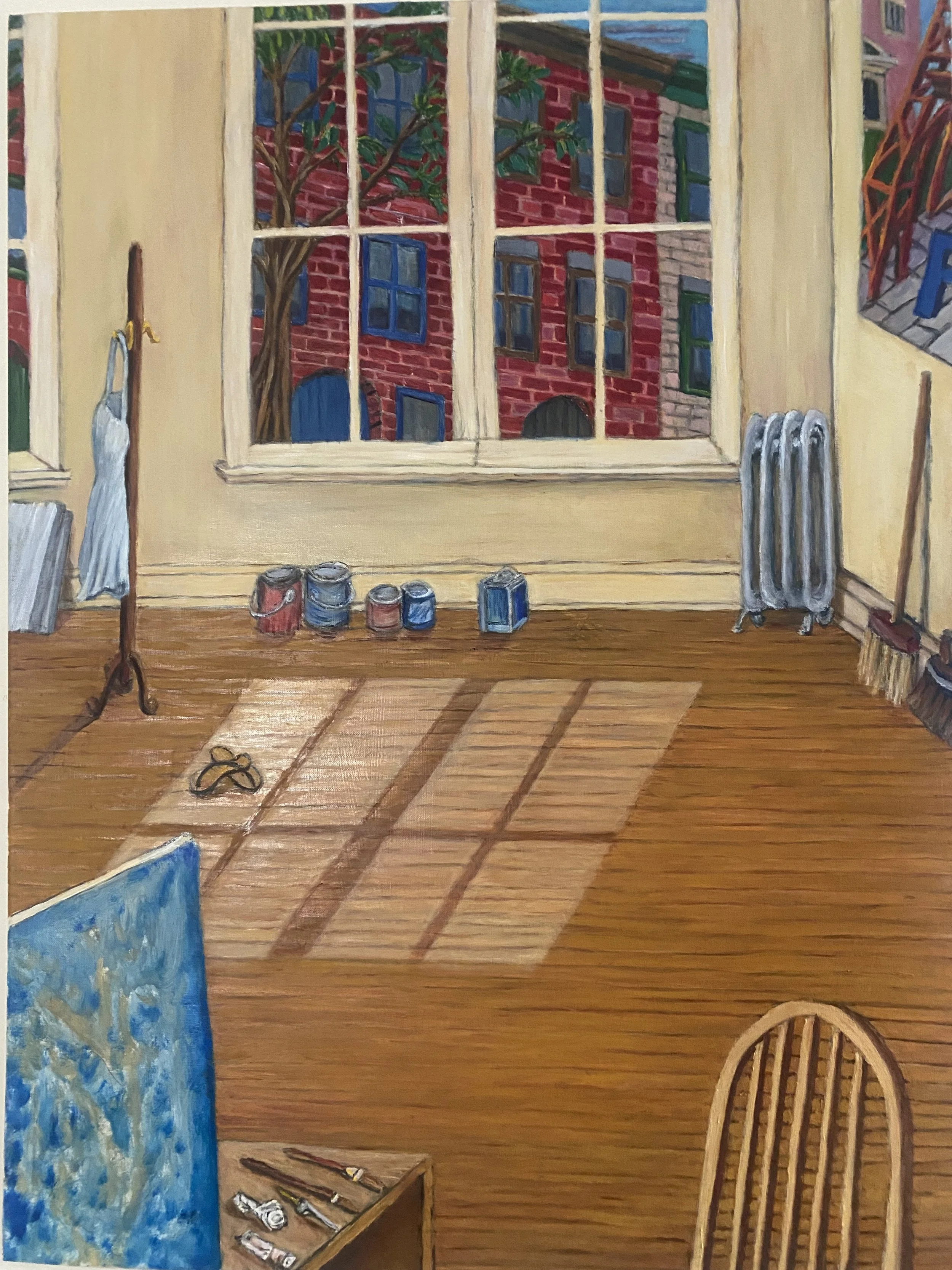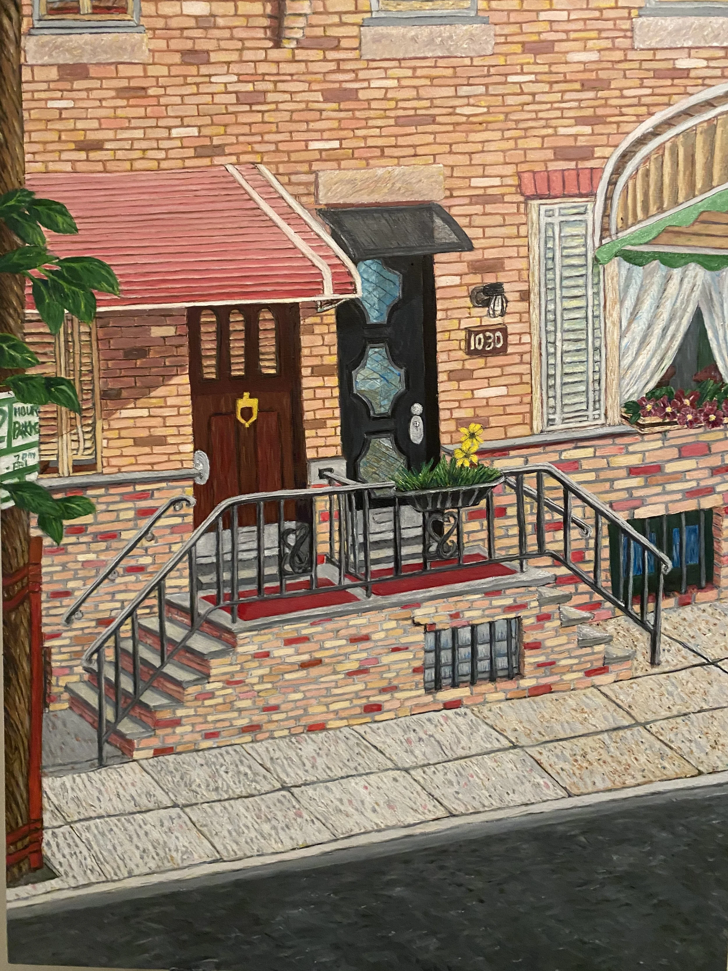 Inspired by the hours spent sitting on a front porch in South Philadelphia during the tumultuous summer of 2020, this simple street scene captures the peace and simple beauty of the neighborhood despite the unrest of the time.