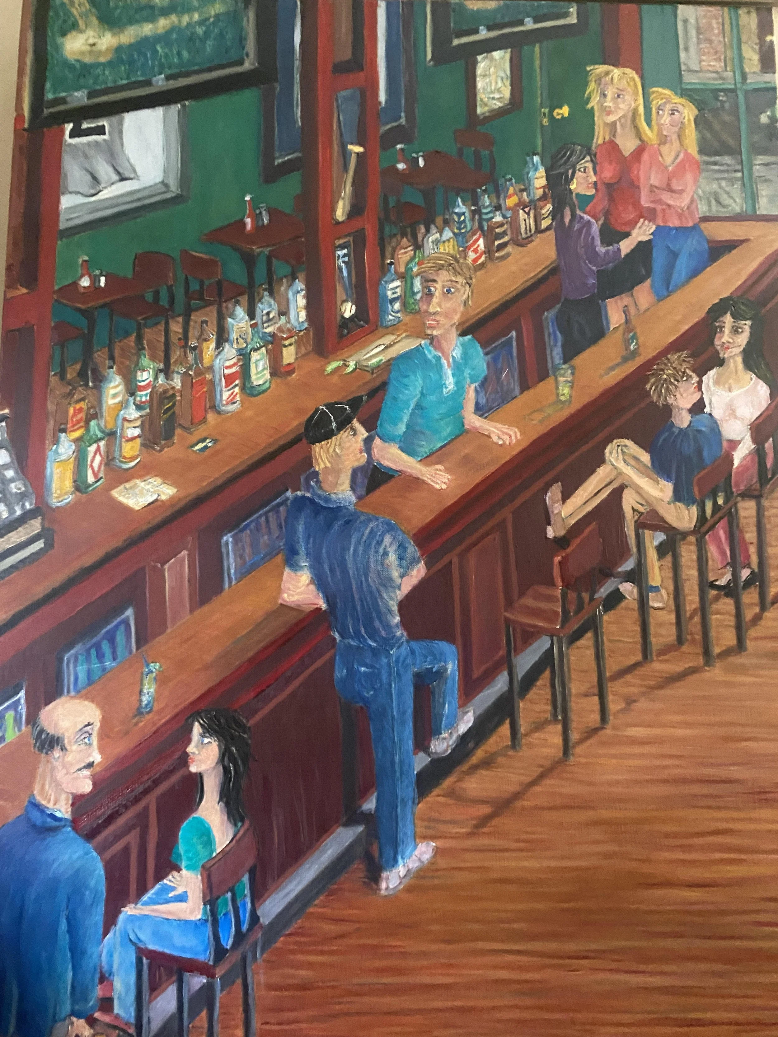 Tuesday Afternoon, 2nd Avenue captures the seemingly mundane events of a Tuesday afternoon in a pub.